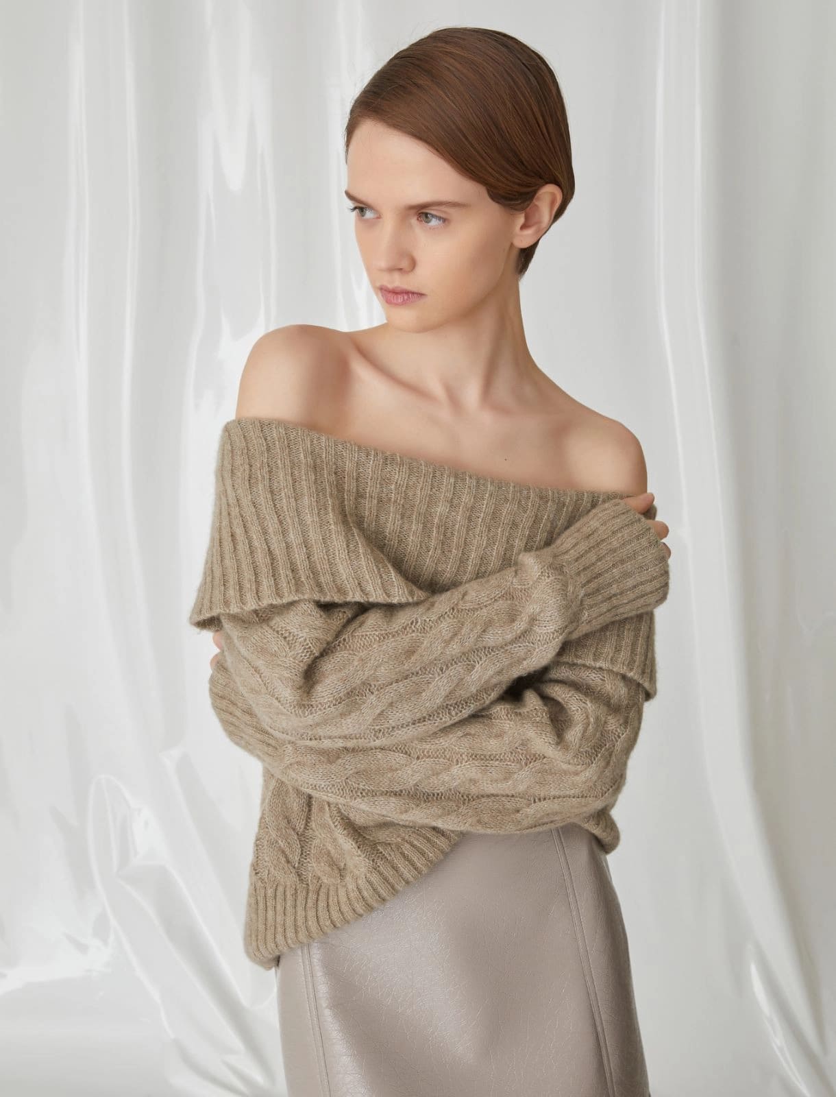 Свитер OMEGA практичный трикотаж сочетается с чувственностью в этом свитере с открытыми плечами и широким воротом. Модель из смеси шерсти альпаки и косичек можно сочетать с леггинсами днем и юбками миди и туфлями-лодочками вечером. Свободный прямой крой. Широкий отложной вырез горловины. Рукава реглан.