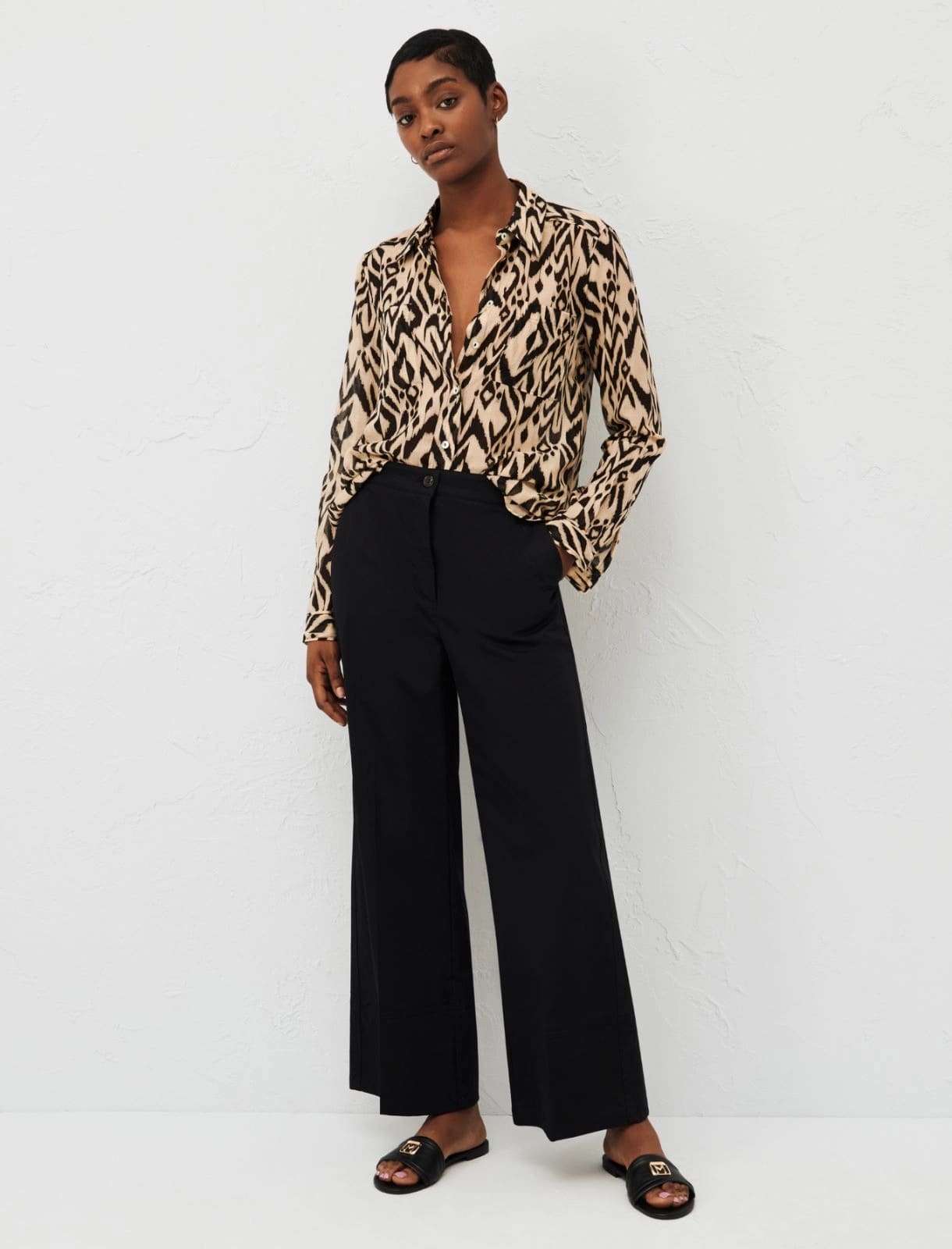 Блуза AGAPE классического кроя из легкого муслина с рисунком из хлопка и шелка. Модель имеет два накладных нагрудных кармана и закругленный низ. Воротник рубашки и видимая застежка на пуговицы. Длинные рукава с манжетами на пуговицах, украшенные манжетами.