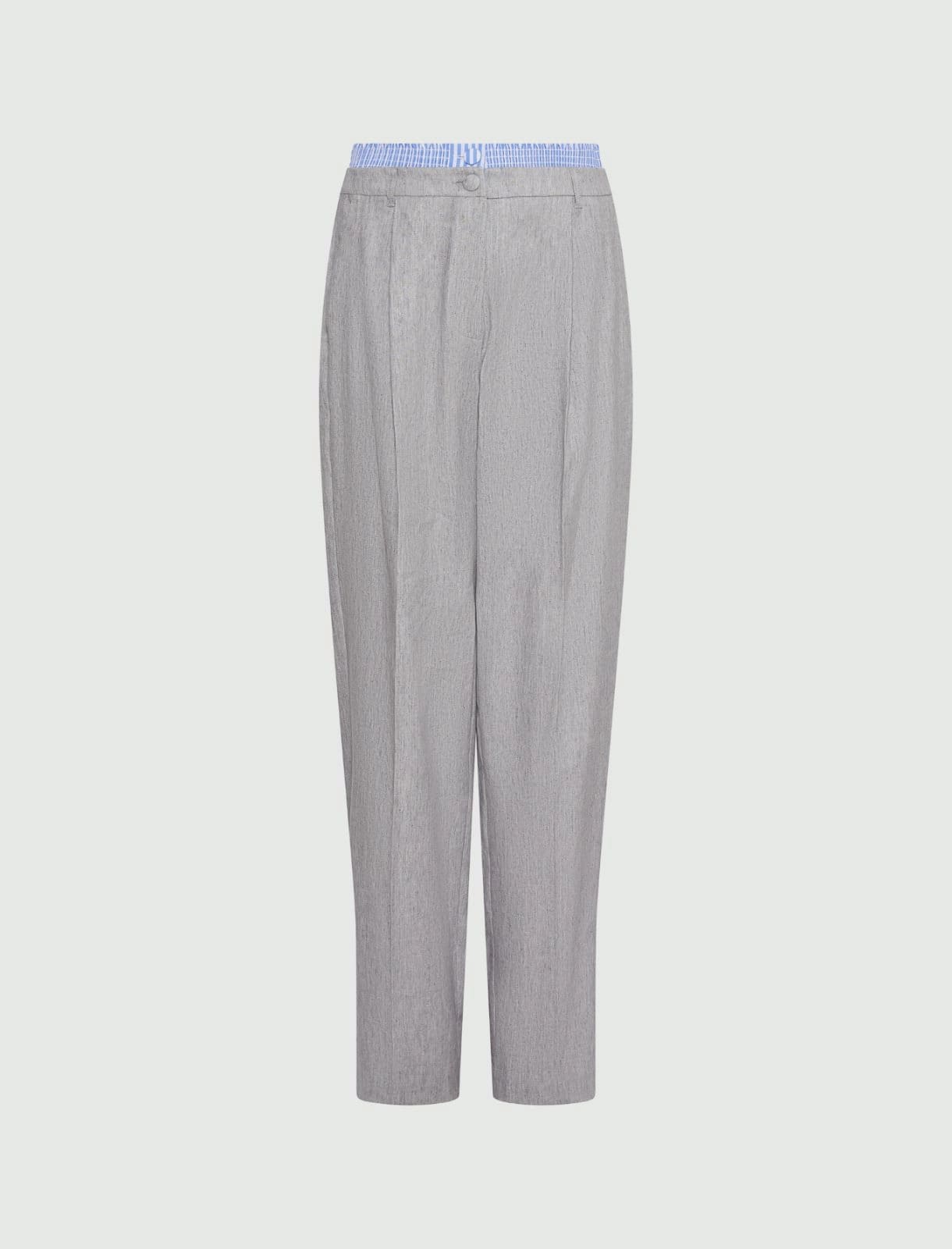 Брюки AUTOCAR обновленный крой этих брюк играет с контрастным съемным внутренним поясом, который приподнимает талию и подчеркивает силуэт. Носить в непринужденной обстановке. Брюки из эластичного льна и хлопкового твила. Прямой крой с узким подолом. Видимая застежка на пуговицы. Пояс со съемной внутренней частью из хлопкового поплина. Косые боковые карманы и прорезные задние карманы.