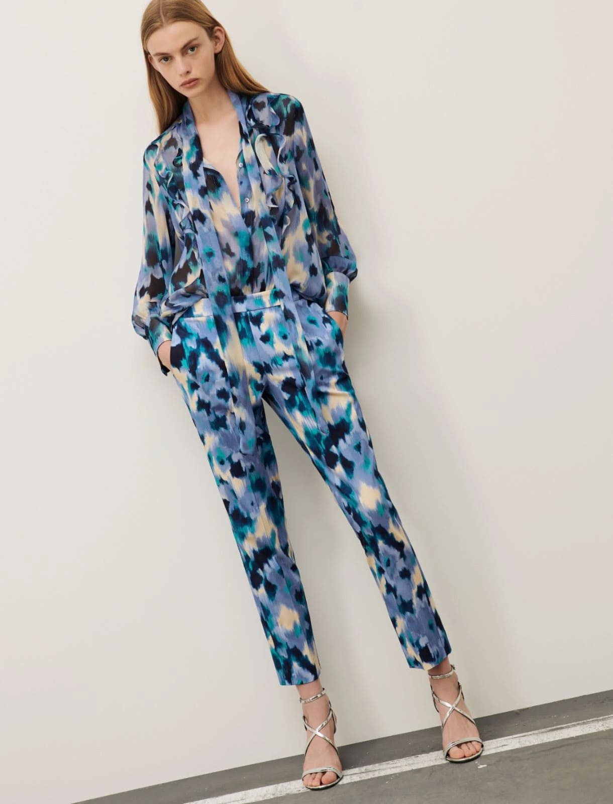 Брюки THEODOR узкие брюки-чиносы из хлопчатобумажного фая с рисунком и простым, лаконичным кроем. Модель ультра-универсальна и органично сочетает в себе стиль и комфорт. Потайная застежка-молния сбоку. Косые передние карманы и прорезные задние карманы.