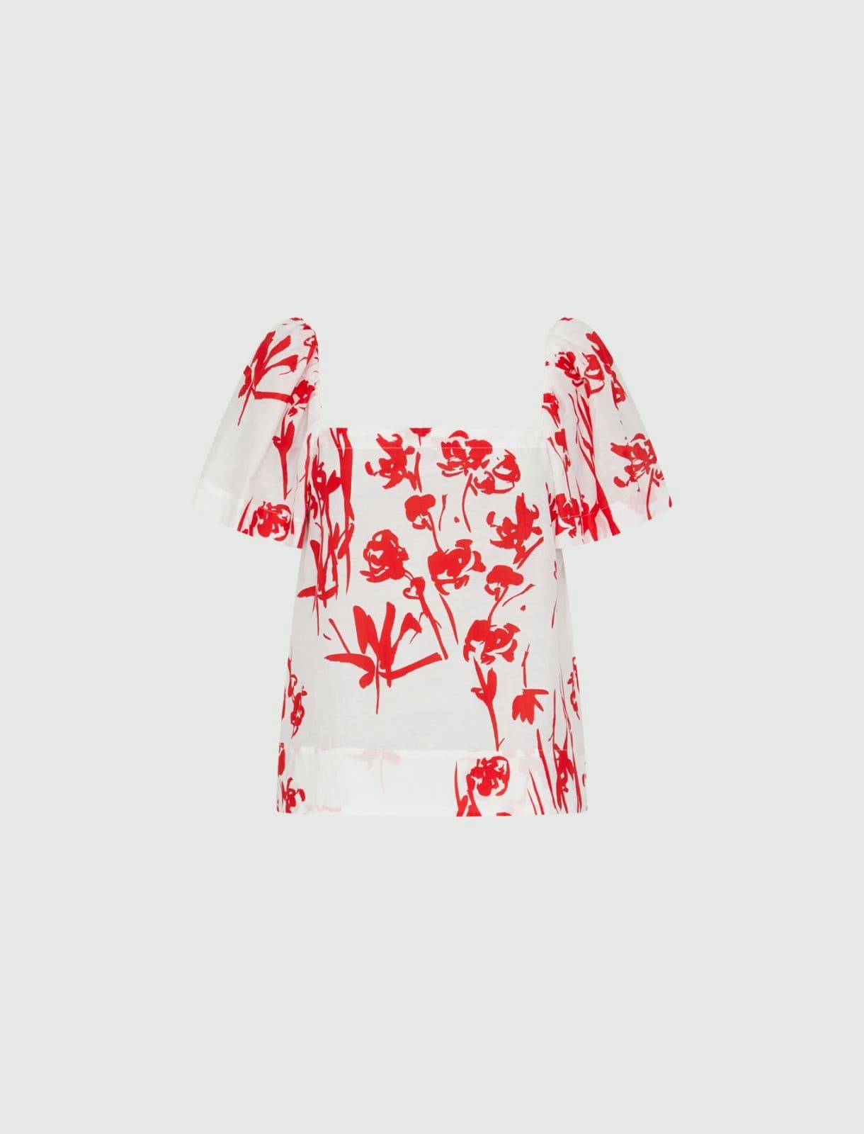 Блуза ARTICLE слегка расклешенный укороченный топ из хлопка и шелкового муслина с рисунком. Модель имеет квадратный вырез горловины и короткие рукава с эластичными проймами.