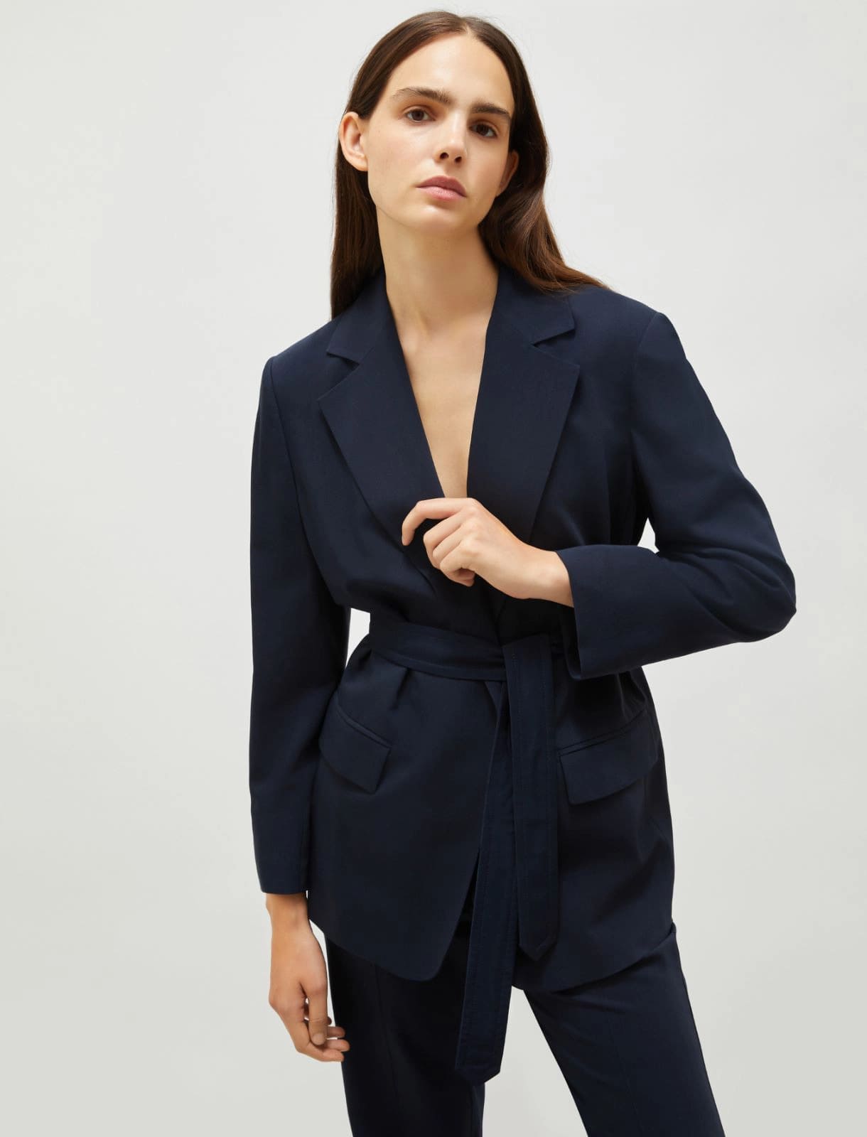 Жакет JARDIN смелый крой на плечах и талия подчеркнутая поясом: новый блейзер сочетает струящуюся ткань с дерзкий дизайн. Для новой женственности, которую можно носить каждый день. Жакет из вискозы и стрейчевого шерстяного крепа. Прямой крой. Лацканный воротник. Однобортная застежка на одну пуговицу. Боковые карманы с клапанами. Мягкий пояс из той же ткани.