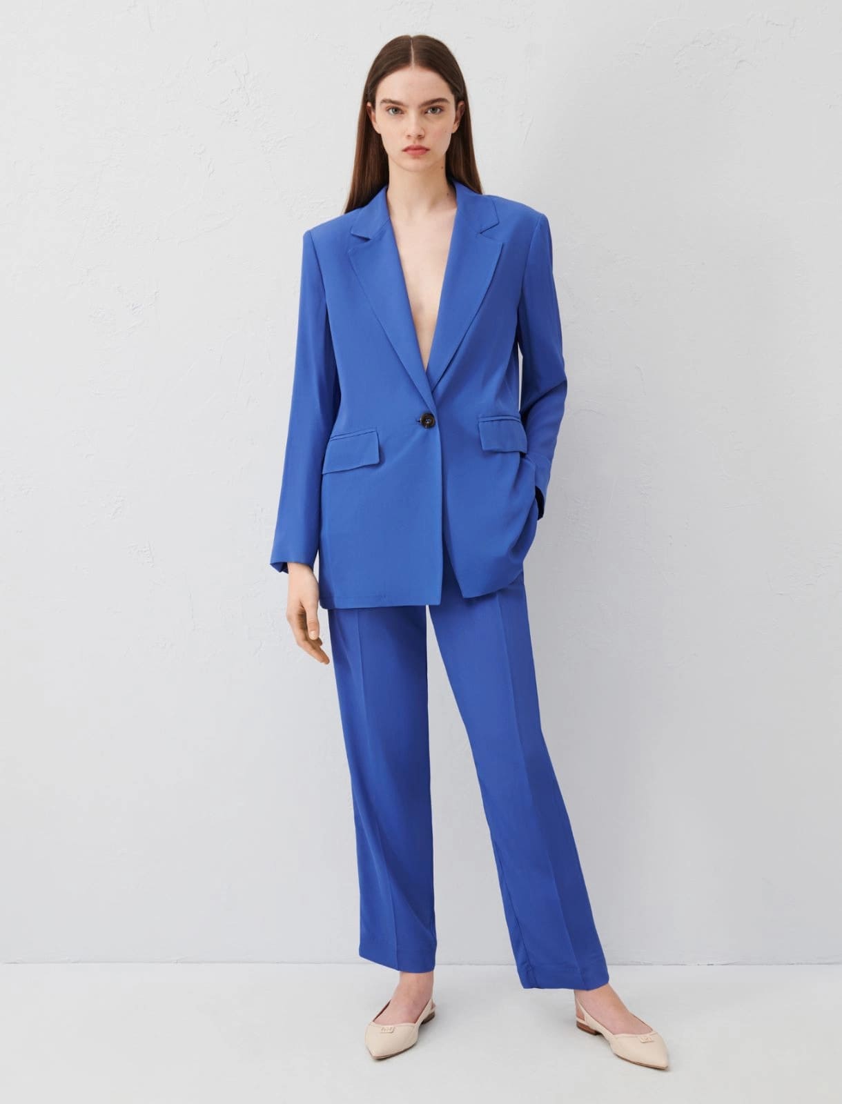 Жакет RINVIO элегантный и современный однобортный пиджак. Изготовлен из крепдешина с добавлением шелка. Прямой крой слегка большего размера с поясом в тон. Воротник с лацканами и длинные заниженные втачные рукава. Видимая застежка на пуговицы и карманы с клапанами. Половина на подкладке.